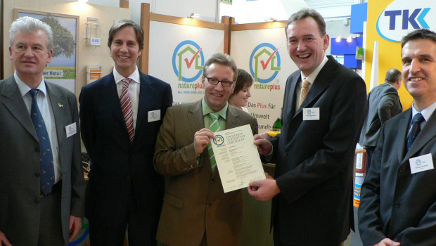 Für die Innensilikatfarbe Naturaweiß hat Alpina das Natureplus-Zertifikat bekommen. Damit wurde erstmals ein Produkt eines großen Farbenherstellers im DIY-Bereich durch den Naturbaustoffverband zertifiziert, sagte Verbandsgeschäftsführer Heiner Kehlenbeck bei der Verleihung im Rahmen der Internationalen Eisenwarenmesse/Practical World. BHB-Geschäftsführer Frank Michel hat die Urkunde übergeben. Mit dieser mineralischen Farbe komme das Unternehmen den in ganz Europa wachsenden Bedürfnissen entgegen, nachhaltig-zukunftsfähige Bauprodukte zu entwickeln und zu vermarkten, sagte er. Er freute sich besonders, dass Alpina all seine Kompetenz im DIY-Sektor eingebracht habe, um die Farbe für den Heimwerker passend zu konfigurieren. Wie Dr. Ralf Murjahn, Peter Stechmann und Wilfried Rulands von Alpina berichteten, ging der Auszeichnung ein aufwändiger Entwicklungsprozess voraus. Nun stehe die Markteinführung der neuen Produktlinie bevor.