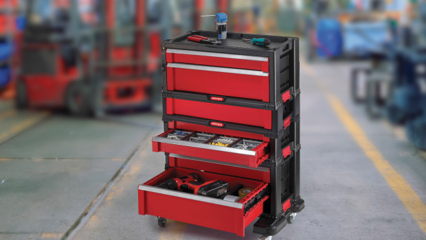 Mit dem neuen Werkzeuglagerungssystem aus dem Hause Keter ist der Arbeitsplatz immer aufgeräumt und übersichtlich organisiert. Ideal für Werkstatt, Hobby- oder Bastelraum, bietet es alle Verstaumöglichkeiten für einen praxistauglichen Einsatz. Werkzeug in den unterschiedlichen Größen lässt sich ideal ordnen und lagern. Optimal ist das System nicht nur für Werkzeuge – selbst die kleinen Teile wie Schrauben, Nägel, etc. hat der Heimwerker durch die mitgelieferten Sortimentskästen und Unterteilungen immer gut organisiert im Blick. Die gegen ein versehentliches Öffnen zentral verriegelten Schubladen sind in unterschiedlichen Größen und Varianten erhältlich. Sie sind weit herausziehbar und ermöglichen so eine schnelle Übersicht.Egal ob als einzelne Einheit oder als Gesamtlösung mit mehreren Schubladen und den passenden Rollen – dieses Werkzeuglagerungssystem aus robustem Kunststoff passt sich individuell den jeweiligen Bedürfnissen an. Durch die Rollen ist es mobil und kann einfach zum Einsatzort gerollt werden. Die Einheiten werden durch stabile Schnappverschlüsse fest miteinander verbunden und können mit wenigen Handgriffen wieder zu einzelnen Boxen umgewandelt werden.www.keter.com