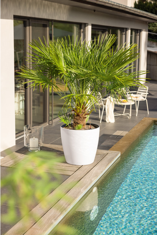 Mit CLASSICO Color 50 erweitert LECHUZA seine beliebte Gefäßfamilie um eine neue Größe, die sich ideal für mittelgroße bis raumgreifende Pflanzen eignet. Die klassische Silhouette und die dezenten, matten Farben – von Muskat bis Schiefergrau – fügen sich nahtlos in jedes Ambiente ein. Auch größere Pflanzen wie exotische Palmen können so ihre volle Wirkung entfalten und erhalten einen stabilen Stand. Die Variante CLASSICO Color LS bietet zusätzlich einen herausnehmbaren Pflanzeinsatz – praktisch für sauberes Umtopfen und einfache Pflege.